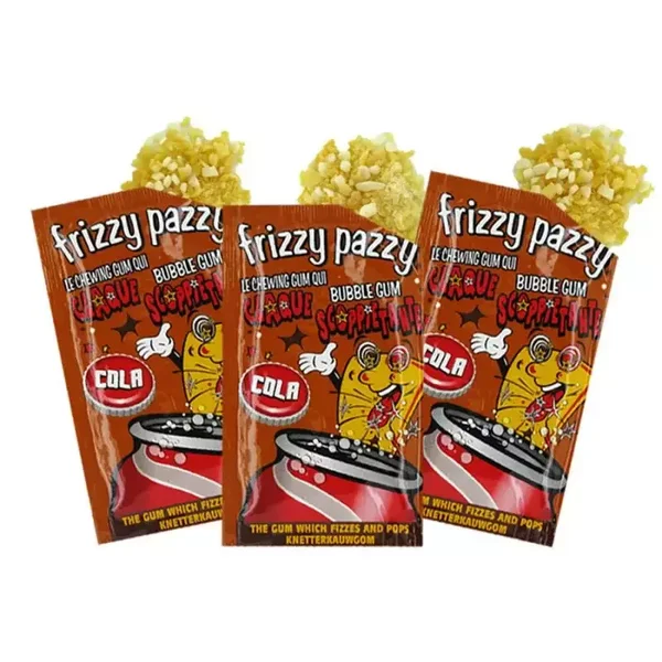 Ingrédients : sucre, lactose, gomme base, malto dextrine, sirop de glucose, émulsifiants E422 acidifiant: E330, arôme artificiel , gaz carbonique