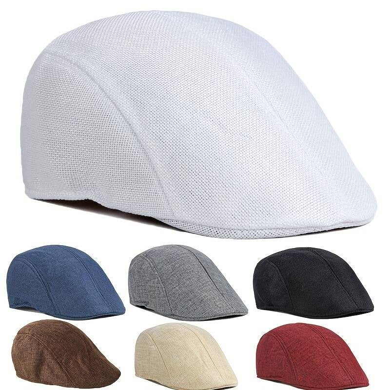 Hommes femmes lin gavroche casquettes plat chapeau Vintage été respirant