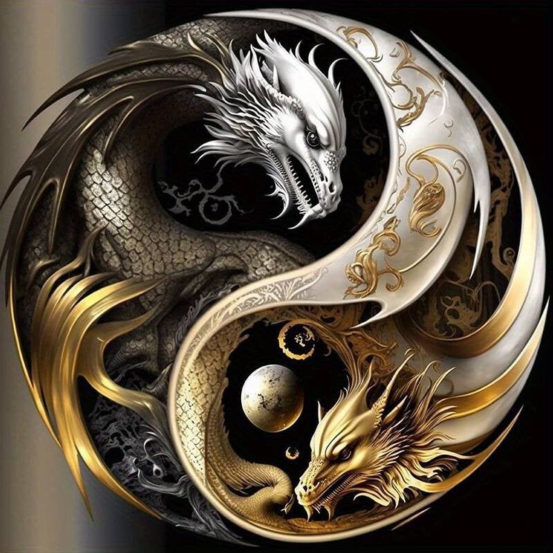 Diamond Painting Dragons 5D Blanc/Or 30x30 cm
