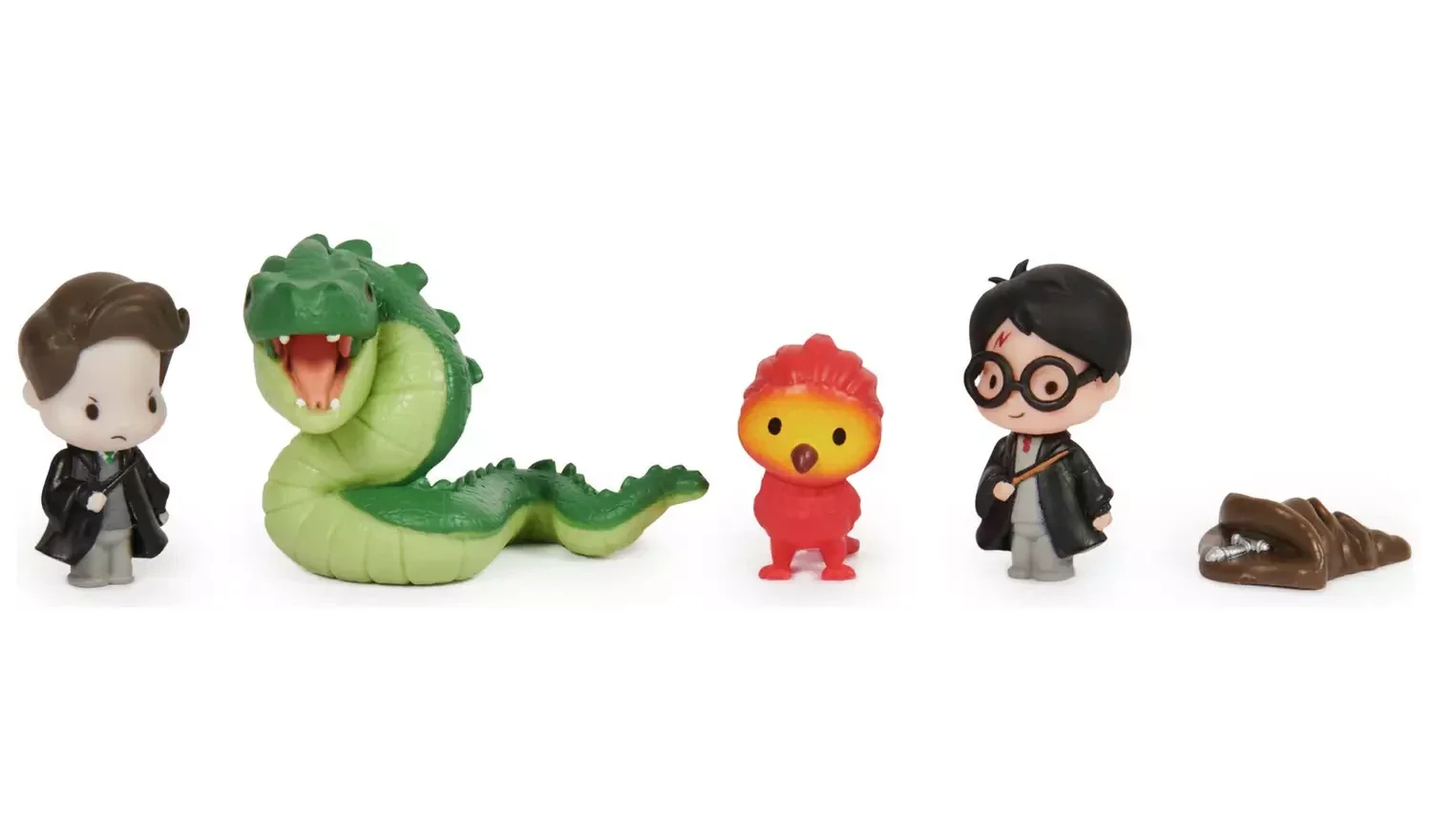 Revivez la scène culminante de l’An 2 de Harry Potter et la Chambre des Secrets avec l’ensemble de figurines Wizarding World Micro Magical Moments. Ce multipack de luxe comprend des figurines de 4 cm de Harry Potter, Tom Jedusor, le Basilic, Fawkes et le Choixpeau magique ; une vitrine transparente pour cadre portrait ; et des supports à quatre chiffres. Déballez vos personnages et découvrez leurs adorables détails : la cicatrice et les lunettes de Harry, le Choixpeau magique cachant l’épée de Gryffondor et bien plus encore.