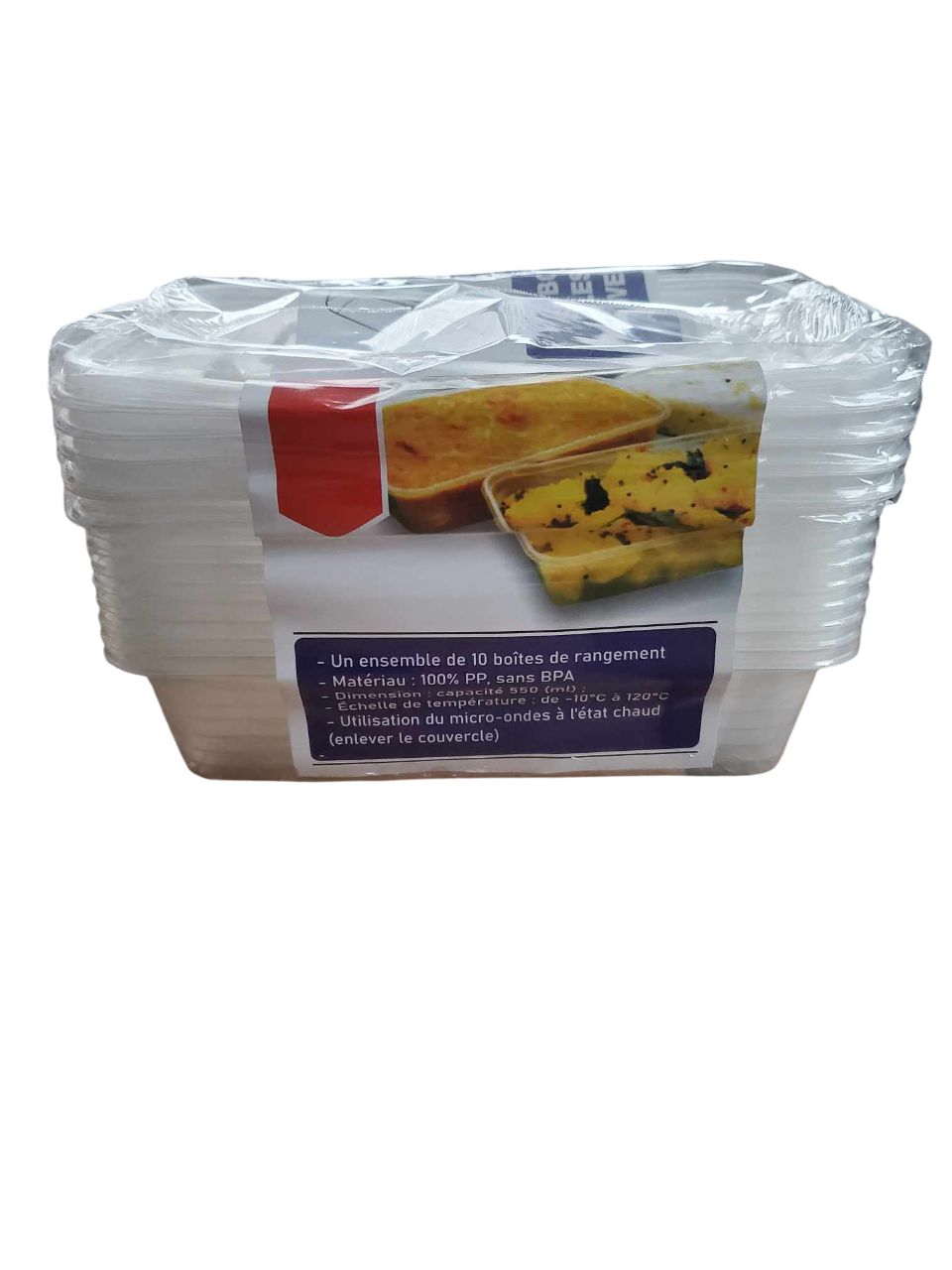 Lot de 10 boîtes alimentaires rectangulaires en plastique transparent avec couvercles