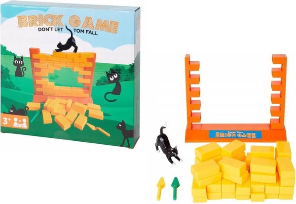 L'objectif principal du jeu est de retirer à tour de rôle un bloc de construction avec la spatule incluse, mais il y a un défi : faire en sorte que Tom le chat ne tombe pas ! Ce défi supplémentaire augmente la tension et apporte un élément supplémentaire de dextérité au jeu.