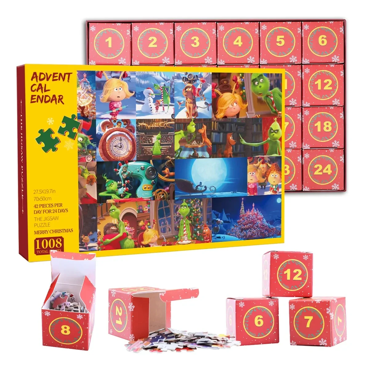 1008 Pcs Grinch Calendrier de Noël Puzzle de l’Avent