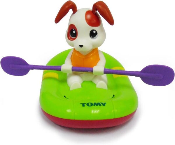 Avant de savoir ramer pour de vrai, voici un adorable chien sur un bateau qui devrait amuser bébé à l'heure du bain !