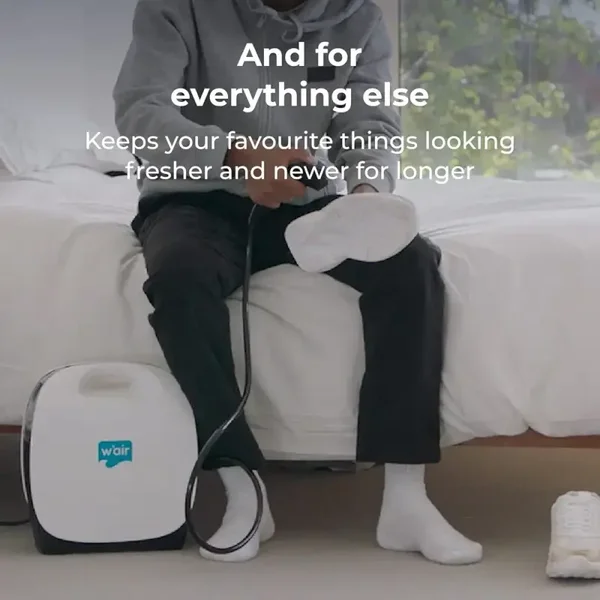 Qu'est-ce que W'AIR ? – W'AIR est un appareil portatif simple d'utilisation et écologique qui élimine les taches, rafraîchit les tissus et nettoie en profondeur les textiles délicats. Fini les longs trempages, les frottements intensifs et les visites coûteuses au pressing. Prenez soin de vos vêtements, de vos textiles… et de l'environnement.