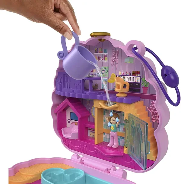 - Ouvrez ce Coffret Toilettage Caniche de Polly Pocket pour découvrir un spa pour animaux où vous attendent la mini-figurine Lila et son amie !