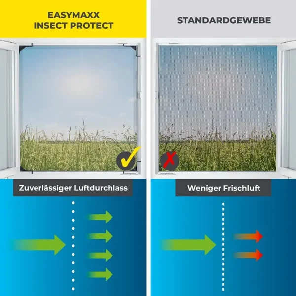 Même la moustiquaire n'a pas besoin d'être découpée par rapport à d'autres solutions de moustiquaires pour fenêtres, car elle est déjà intégrée dans le cadre télescopique en aluminium très pratique - fini les coupes fastidieuses !